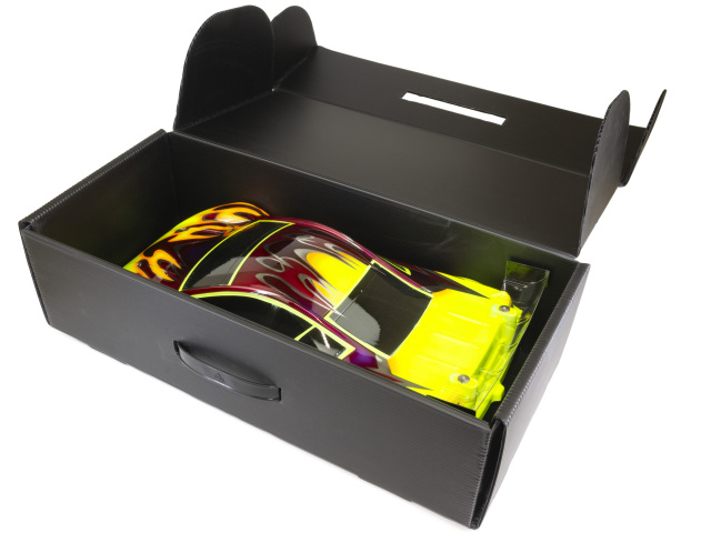 一般的なダンボールよりも、耐久性、耐水性に優れるプラダン製カーゴボックス。上面に INFINITY WORLD CHAMPIONS TEAM ロゴをあしらったシックなデザインです。1/10スケールツーリングカーがぴったり収まるサイズです。サイズ:47x21.5x13cm (梱包サイズ:47x47x2.5cm)