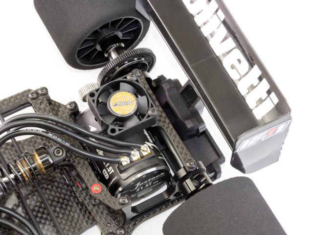 モーターの真上に30mmサイズクーリングファンをマウントし、モーターを効率的にクーリングすることが可能となります。 (30mm サイズクーリングファンは別売り。<SMJ1188B>SMJ スーパーハイスピードクーリングファン 30mm の使用を推奨)