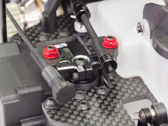Throttle side servo horn is made of high-precision aluminum for more direct throttle response and stronger braking. (25T for Futaba)
