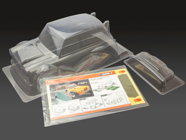 Mシャーシ(ホイールベース210mm)用SMJオリジナルボディ。 前後オーバフェンダーと大きなリアウイングが目を引くハッチバックスタイル。 専用デカール付き。