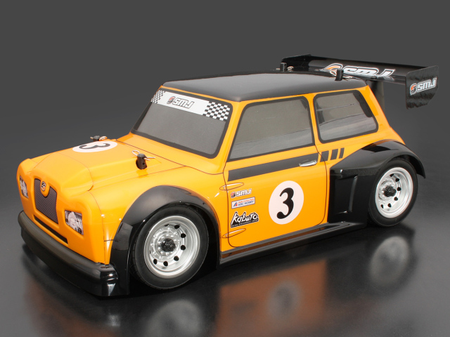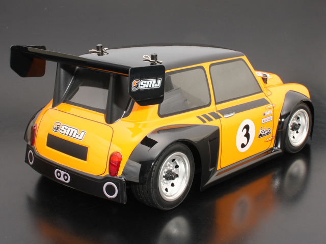 SMJ original body for M chassis (wheelbase 210mm). Eye-catching hatchback style with front and rear overfenders and large rear wing. Exclusive decals included.