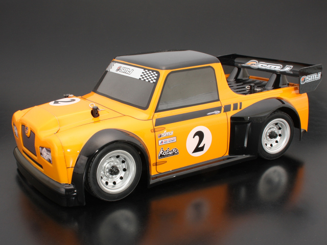 SMJ original body for M chassis (wheelbase 210mm). Eye-catching racing pick-up style with front and rear overfenders and large rear wing. Exclusive decals included.