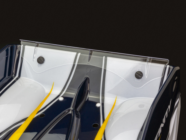 SMJ1411 SMJ C235 1/10GPボディ(235mm) 専用に開発されたリアスポイラー&スティフナーのセット。ボディー形状にフィットするようにデジタルモデリングされ、付属するプラスチックリベットで固定するだけで歪みなくボディーを仕上げる事が出来ます。
