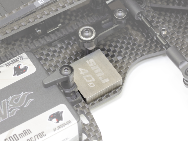 電動ツーリングカーにおいて、ショーティバッテリーを使用する際の重量バランスを調整するのに適したタングステン製バランスウェイト。 バッテリーの前後に各1個(合計80グラム)の使用がおすすめです。