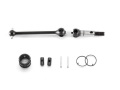 ステアリング切れ角を見直したフロントD.J.CVDドライブシャフト。アルミベルクランクを使用して、より多くのステアリング切れ角を与えてもスムーズに駆動力を伝達します。ホイールアクスル、ドライブシャフトは必ずVer.2同士の組み合わせでお使いください。従来のホイールアクスルとVer.2のドライブシャフトは組み合わせて使用しても、Ver.2同等の性能を得ることは出来ません。